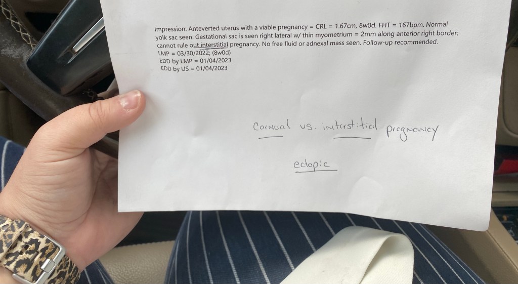 I left the office with this one piece of paper. I was barely holding it together I couldn’t even check out. I ran out of the hospital and called my sister crying. She could barely hear me or understand me.